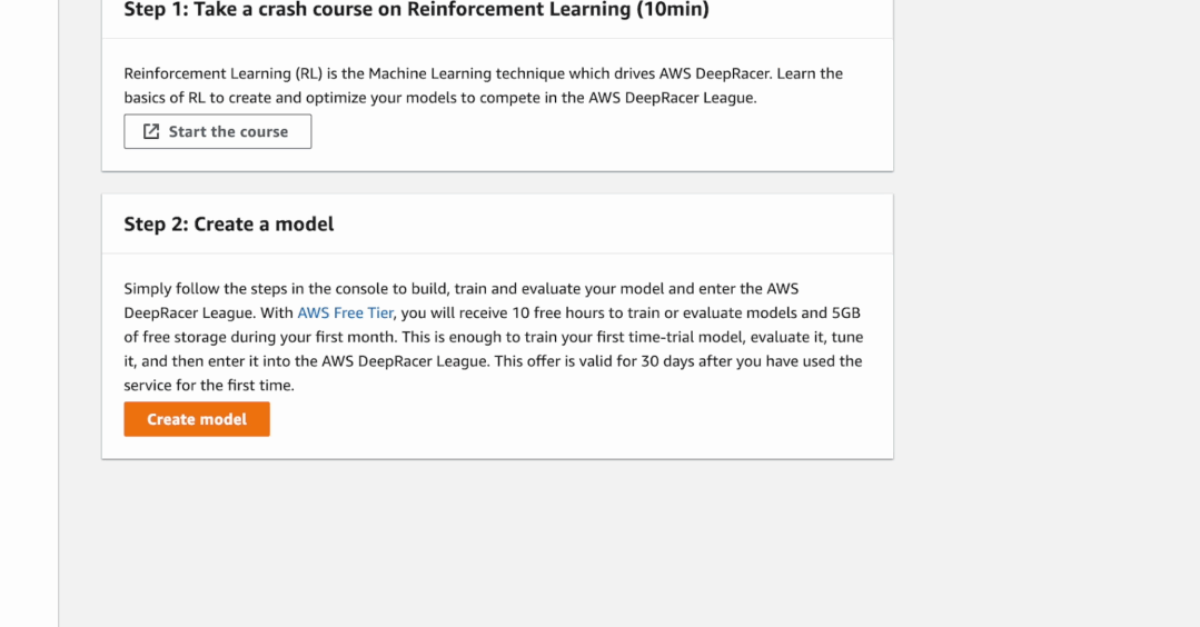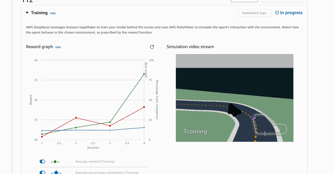 算法的训练需要在虚拟环境中进行,为此Amazon DeepRacer配套了一个管理控制台,里面包含一个3D赛车模拟器,能让人更直观地看到模型的训练效果。