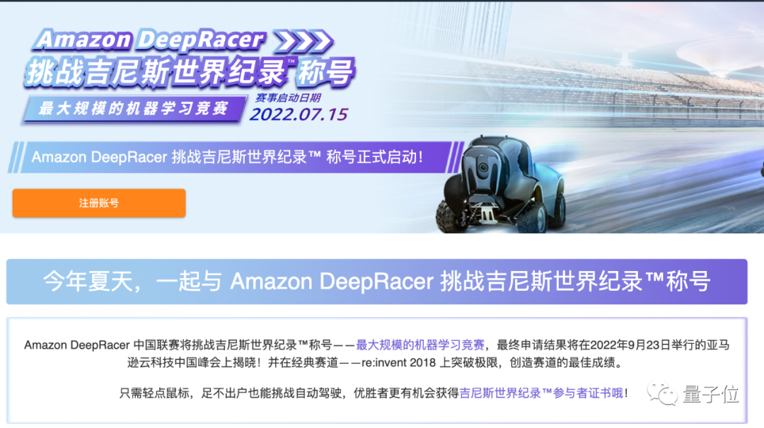与之同时,亚马逊云科技官方还在搞一个“挑战吉尼斯世界纪录”的活动,目标是突破4387这个参赛人数数字,申请成为全世界“最大规模的机器学习竞赛”。