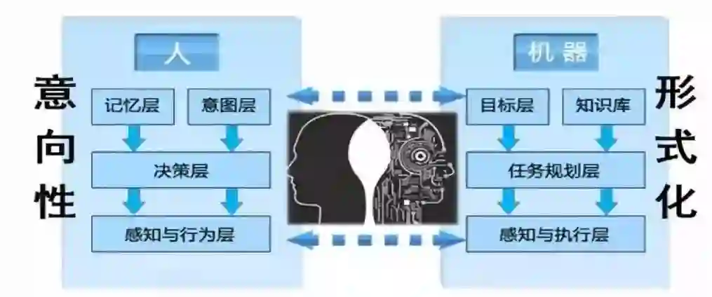 人机融合的另一个关键问题是公理与非公理混合推理,直觉与理性结合的决策。公理是数学发展史中的理论基础,而在科学研究过程中逻辑推导是最为核心的方法。相同的,计算机的运行过程依旧是按照严密的算法语言运行。但是人类的决策不同于这个过程,人类的联想能力还依赖于类比推理。类比推理为非公理推理的一部分。非公理推理决定了在弱态势情况下的强感知问题。这种学习方法依赖于先验知识,通过利用大数据与概率的方法实现。而实现机器的非公理推理是人与机器的区别之一。更是人的情感在机器上实现的重要途径。通过先验知识人类产生直觉,而理性的分析是直觉的对立面。机器总是在理性地处理数据,而如何让机器产生直觉能力是人机融合的平滑性的关键。公理与非公理推理,直觉与理性的结合决策将是解决人机融合智能输出的重要研究方向。