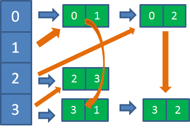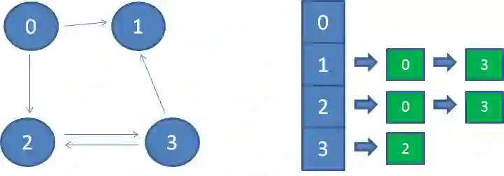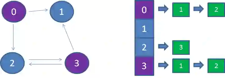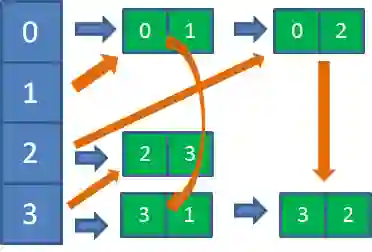 要想查出顶点0能够到达的所有相邻节点,也很简单,从顶点0向后的所有链表节点,就是顶点0能到达的相邻节点。