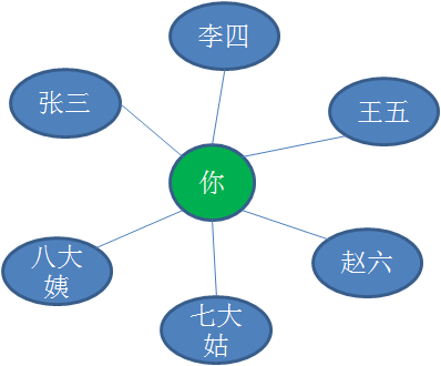 举个栗子,大家一定都用过微信,假设你的微信朋友圈中有若干好友:张三、李四、王五、赵六、七大姑、八大姨。