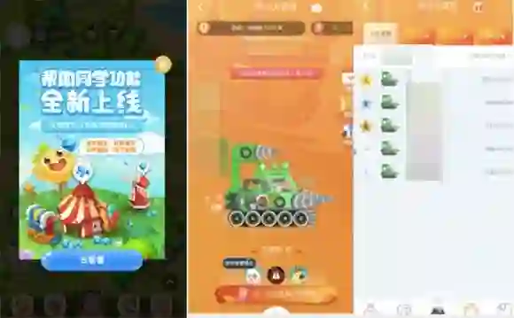 老师端注册成功之后并无异常,但是学生端注册成功之后就出现了明显的“成长世界”入口,里面是类似开心农场的游戏页面,可以养植物、动物,还可以选派宠物与其他用户竞技。