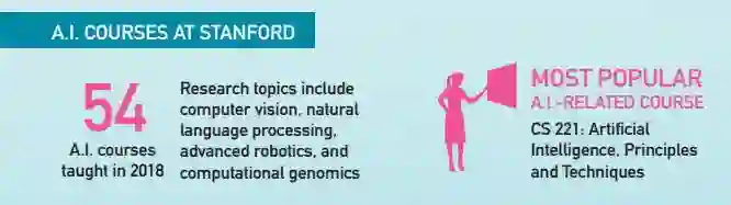 在 2018 年,斯坦福开设的人工智能相关课程涵盖了 54 个研究主题,包括计算机视觉、自然语言处理、高级机器人以及计算基因组学等。其中最受欢迎的则要数《CS 221: 人工智能原理与技术》课程。