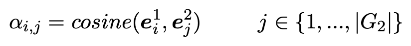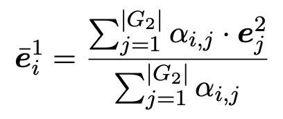然后,我们用这些相似点作为权重并通过对 G2 中所有实体嵌入向量加权求和的方式来计算整个图的关注向量。