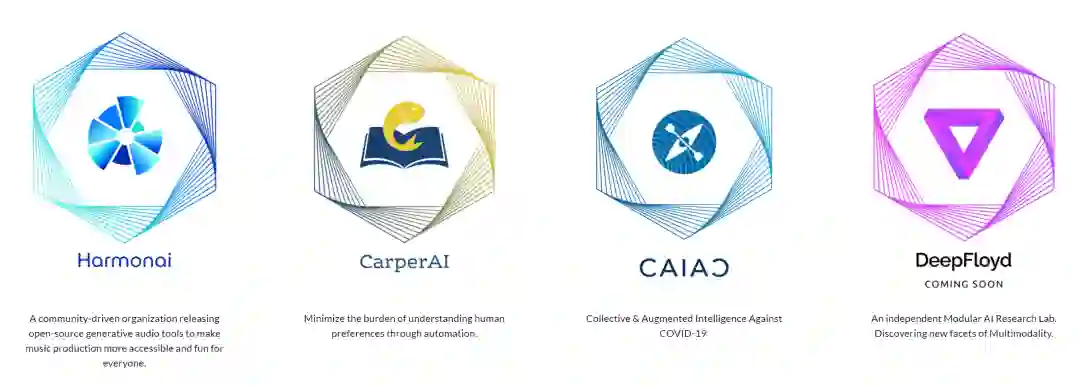 除了Stable Diffusion,Stability AI雄心勃勃的计划下面还聚集了EleutherAI和LAION等知名开源项目,以及生物模型OpenBioML、音频生成Harmonai、人类偏好学习Carperai、新冠研究Caiac和多模态DeepFloyd等更多项目。