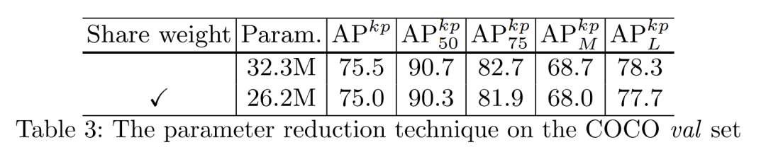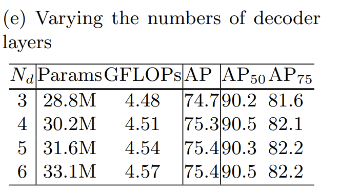 在DETR中也指出,后面的decoder实际上是在做一个coarse-to-fine的过程,即对预测结果进行逐层精炼,因此decoder除了可以定义多个层,也可以只定义一层,然后循环执行,把每次输出的结果又送给自己推理做一遍。本文的实验显示这样做在本文的方法上同样有效,能用一点点性能下降换取不错的参数量降低: