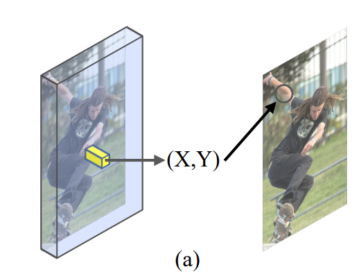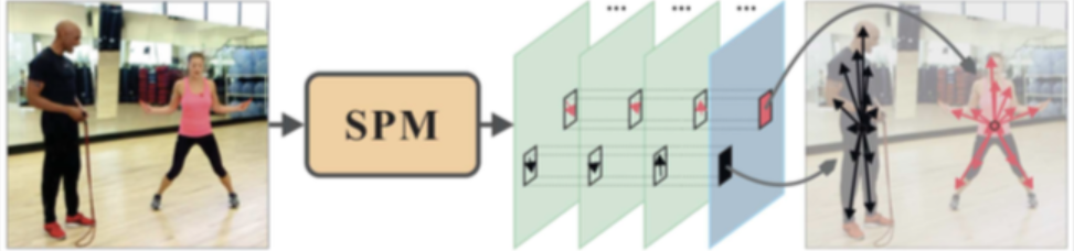 第二点针对的主要是一些利用局部卷积特征来回归坐标值的方法,比如SPM和UDP等检测+回归形式的方法。这种方法的问题在于,回归坐标值时使用的特征取决于heatmap响应点,而响应点往往是目标的几何中心,这就意味着网络要用这块区域的特征去预测一个比较远的坐标,这会使得特征所在的位置,跟目标位置之间存在一定的偏移,这种偏移会增加学习的不确定性和难度。论文里给的这张图其实我觉得不够直观,我再配一张带箭头的或许能帮助大家更好理解,SPM方法是用人体中心点那一块的卷积特征去预测箭头所指的位置: