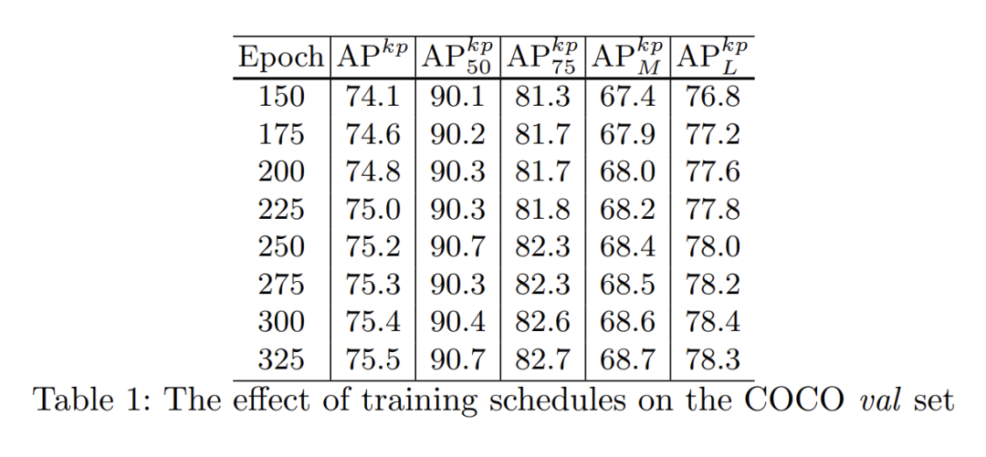 另一个需要说明的点是,本文报告的结果是训练了325epoch的结果,而过往的工作一般是270或者250epoch,本文在附录里也进行了解释,在250和270的时候本文的结果也已经超越之前的工作了: