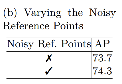 于是本文设计了一个人工噪声的模块,用人工生成的随机坐标作为预测参考点送进Decoder一起训练,要求模型预测正确的结果,给Decoder负重训练了属于是。在训练结束后扔掉,推理时使用RLE的结果作为参考点。
