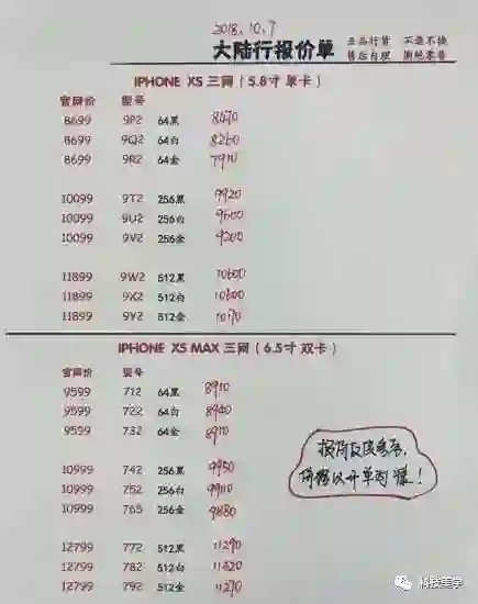 有供应链研究人士分享了一份10月7日更新的iPhone XS/XS Max国行报价单,总结来说就是全面破发。