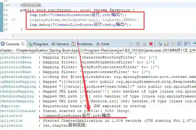 利用CommandLineRunner或者ApplicationRunner可实现在SpringApplication的run()完成前执行一些业务逻辑