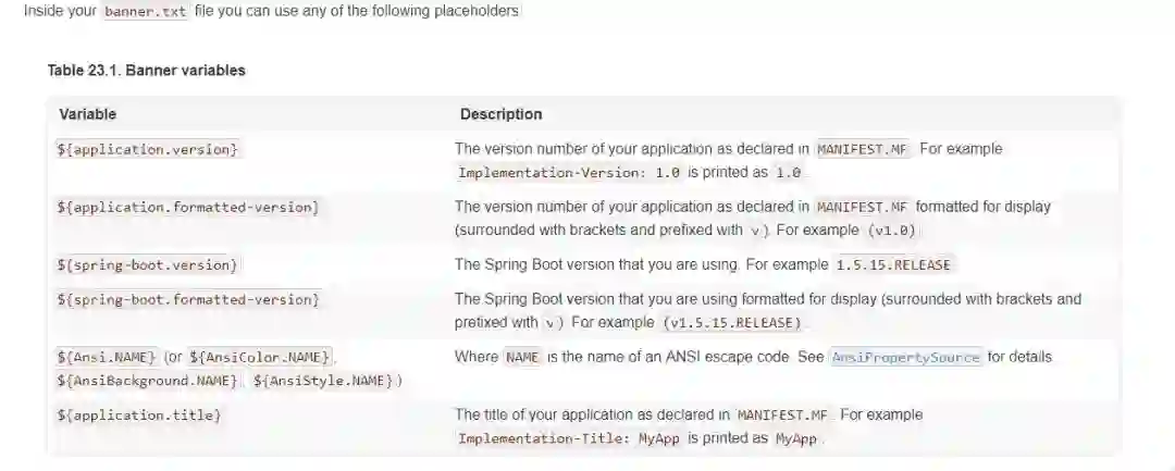 其实,替换很简单,只需要在classpath路径下创建一个banner.txt即可。具体的一些变量官网也有给出,具体如下: