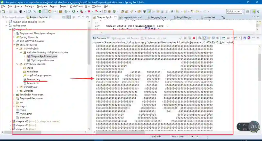 若觉得使用文字不够酷炫,当然也可以将图片设置为启动的banner。目前支持的图片格式有gif、png、jpg。使用也很简单,只需要命名为banner即可。
