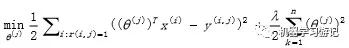 他是通过梯度下降法来最小化误差的平方损失,其中θj为所要学习的用户维度特征,Xi为项目的内容维度特征,我们所要训练的是用户j对于已有行为的项目j的训练,来使得观测数据与预测数据的误差最小。