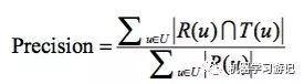 准确率的意义在于所预测的推荐列表中有多少是用户真是感兴趣的,即预测列表的准确率,那么准确率的定义为: