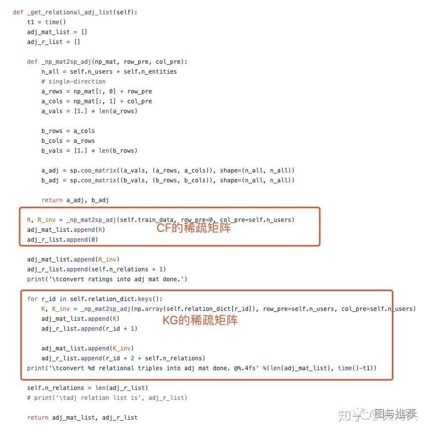 get_lational_adj_list:用稀疏矩阵变量adj_*mat_*list存储CF与KG的连通信息。