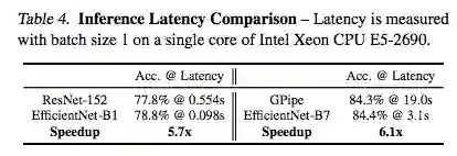 EfficientNet-B1 的参数量远远小于 ResNet-152,但速度是后者的 5.7 倍。