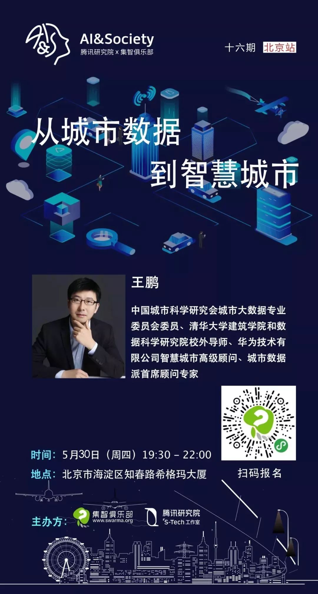 2019年5月30日的第十六期 AI&Society沙龙,我们邀请了资深智慧城市专家王鹏,分享关于智慧城市的一线规划实践和最新研究进展。“AI&Society”是由腾讯研究院 S-Tech工作室与集智俱乐部共同打造的系列学术沙龙活动,旨在挖掘 AI 与社会研究交叉领域的研究者、创新者,促进思维碰撞。