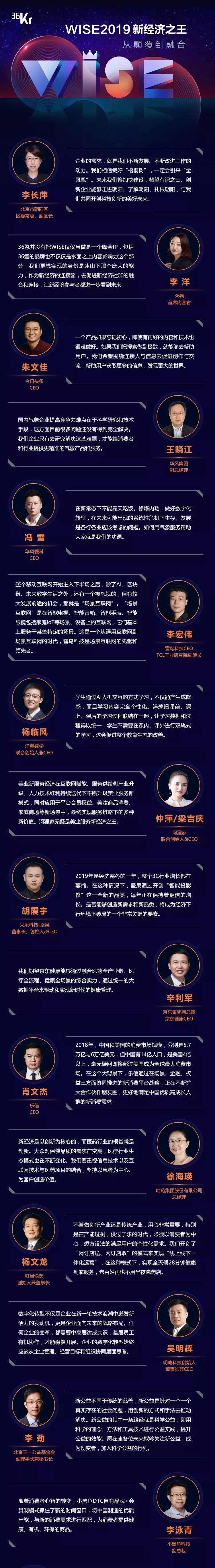 11月26-27日,36氪在北京国际会议中心举办了2019WISE新经济之王大会,关注新技术、新场景对传统产业的颠覆与融合,连接初创公司、互联网巨头、投资机构、地方政府、传统企业、个人用户等市场参与主体,共同复盘过去10年新经济的发展路径、探讨新经济下一个十年的新机遇和新挑战。