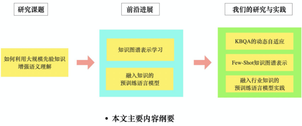 从如何利用大规模先验知识增强语义理解的课题出发,结合阿里巴巴云小蜜的业务场景,本文第二部分对知识表示与融入的技术前沿和若干行业应用进行介绍,具体来说主要对知识图谱表示学习和融入知识的预训练语言模型及其在若干场景下的应用介绍,在第三部分,本文介绍了阿里巴巴云小蜜在知识应用上的探索与实践,主要分为三部分: