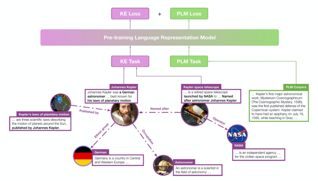 [17] Wang X, Gao T, Zhu Z, et al. KEPLER: A unified model for knowledge embedding and pre-trained language representation[J]. arXiv preprint arXiv:1911.06136, 2019.