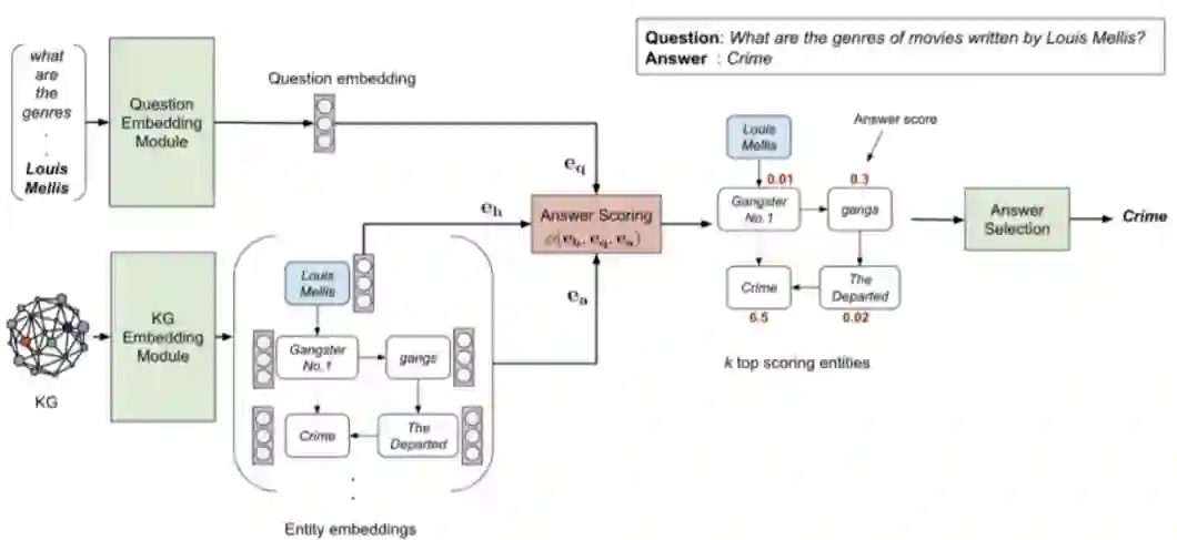 KEQA 工作只是针对简单问句的 KBQA 任务,不能解决多跳的 KBQA 任务。发表在 ACL2020 上的 EmbedKGQA 方法