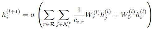 。RGCN 模型是最早将图卷积神经网络(GCN)引入知识图谱表示学习的研究,模型结构为: