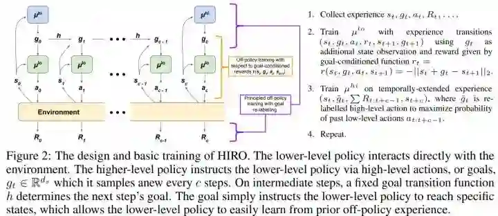 HIRO的全称是HIerarchical Reinforcement learning with Off-policy correction,本文关注off-policy下high/low level non-stationary的问题,off-policy本来就十分不稳定,很多算法采用很多技术才减弱了不稳定性,除此之外在HRL下也有它特有的不稳定性,就是上下层策略的不稳定性,HAC中是通过HER来解决这个问题的。