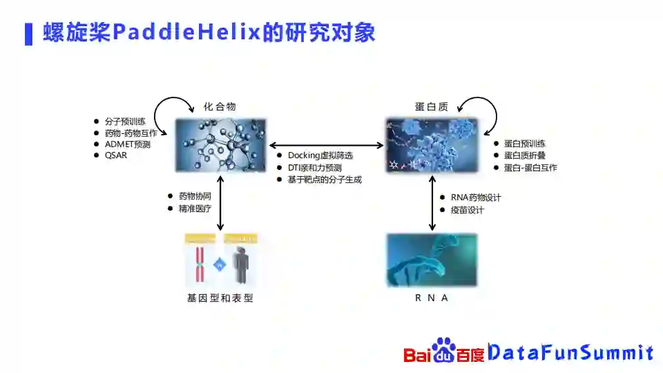 PaddleHelix的主要研究对象包括蛋白质化合物、基因型表型、RNA以及它们相互之间的一些关系。
