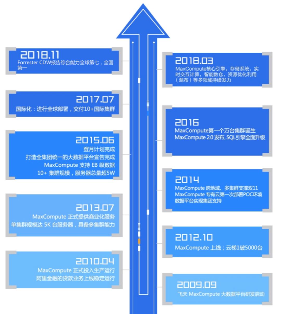 从2009年云梯到 ODPS,再到 MaxCompute,MaxCompute(ODPS) 这个大数据平台已经发展了十年。回顾 MaxCompute 的发展,首先从云梯到完成登月,成为了一个统一的大数据平台。