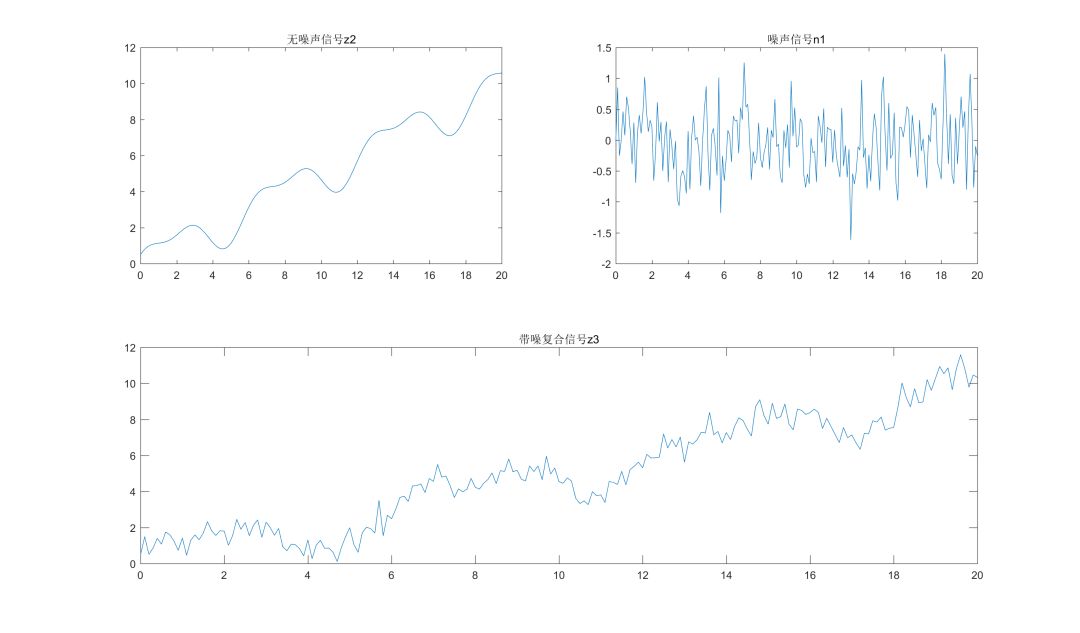 在原z2的信号中增加噪声信号n1,噪声强度为0.5倍的标准正态分布,即复合信号z3=z2+n1,如下图所示。