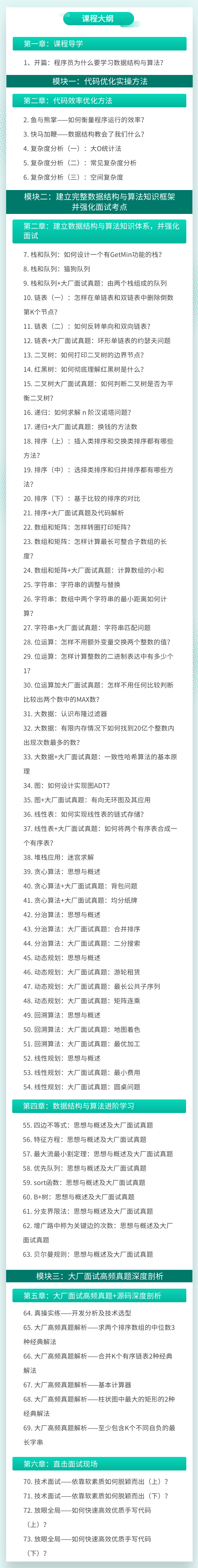 我将带你掌握 30 个数据结构与算法原理,并通过实战让你掌握其内核,最后再解读大厂高频面试真题。让你在工作、求职中遇到算法相关问题时都能灵活应对!