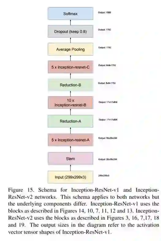 网络的结构如上图,下面我们看看如何与ResNet结合(主要体现在Inception-resnet-A\B\C模块里):