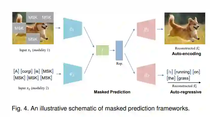 掩码预测任务可以采用自动编码(类似于BERT[101])或自动回归方法(类似于GPT[102])来执行。