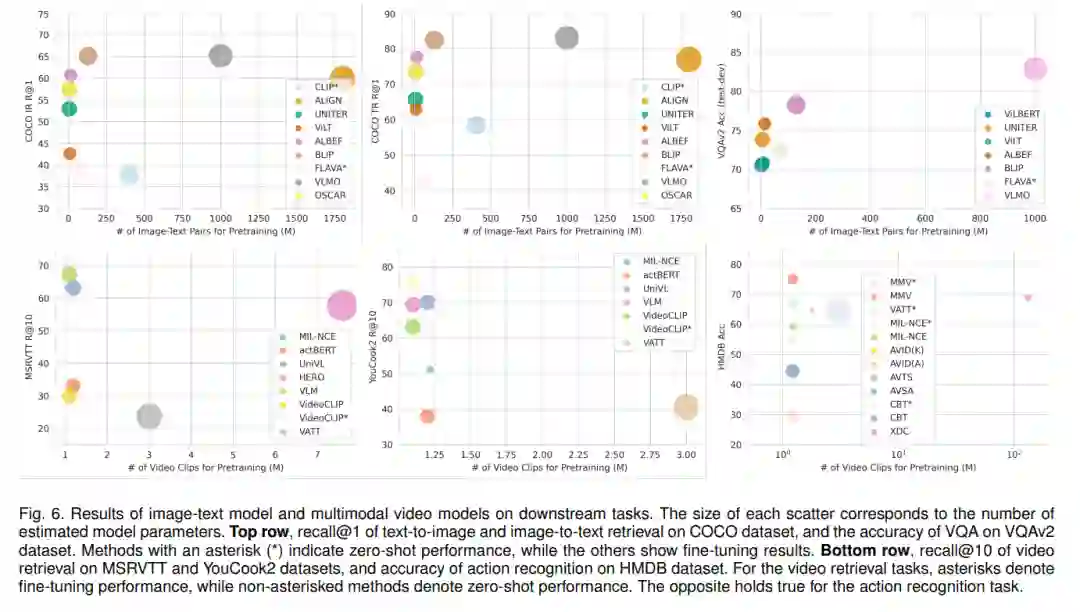 在多模态环境中,术语自监督已被用于指至少四种情况:(1)从自动成对的多模态数据中进行无标签学习——例如带有视频和音频轨道的电影[23],或来自RGBD摄像机[24]的图像和深度数据。(2)从多模态数据中学习,其中一个模态已经被手动注释,或者两个模态已经被手动配对,但这个注释已经为不同的目的创建,因此可以被认为是免费的,用于SSML预训练。例如,从网络爬取的匹配图像-标题对,如开创性的CLIP[11]所使用的,实际上是监督度量学习[25],[26]的一个例子,其中配对是监督。然而,由于模式和配对都是大规模免费提供的,因此它通常被描述为自监督的。这种未经策划的偶然创建的数据通常比专门策划的数据集(如COCO[22]和Visual Genome[27])质量更低,噪音更大。(3)从高质量的目的注释的多模态数据(例如,COCO[22]中的手动字幕图像)中学习,但具有自监督的风格目标,例如Pixel-BERT[28]。(4)最后,还有一些“自监督”方法,它们混合使用免费和手动注释的多模态数据[29],[30]。为了本次调查的目的,我们遵循自监督的思想,旨在通过打破手动注释的瓶颈来扩大规模。因此,就能够在免费可用的数据上进行训练而言,我们包括了前面两类和第四类方法。我们排除了仅显示用于手动管理数据集的方法,因为它们在管理数据集上应用典型的“自监督”目标(例如,屏蔽预测)。