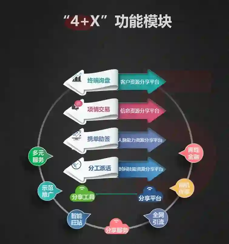 易智家2.0版首批推出四大分享功能,分别为终端询盘(客户资源分享平台)、项情交易(信息资源分享平台)、携单助签(人脉能力资源分享平台)、分工派活(时间技能资源分享平台),交易全过程采用无障碍信息沟通技术,建立完善的及时、公开、透明分享信任反馈体系,可有效加速、保障智能制造价值链资源要素快速流通与高效精准配置过程。