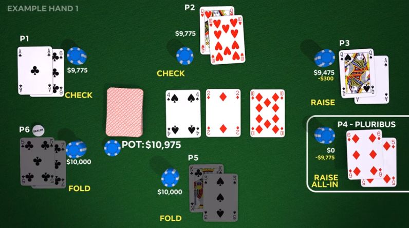 图1:Pluribus在和五个职业玩家的对战中做了一个诈唬