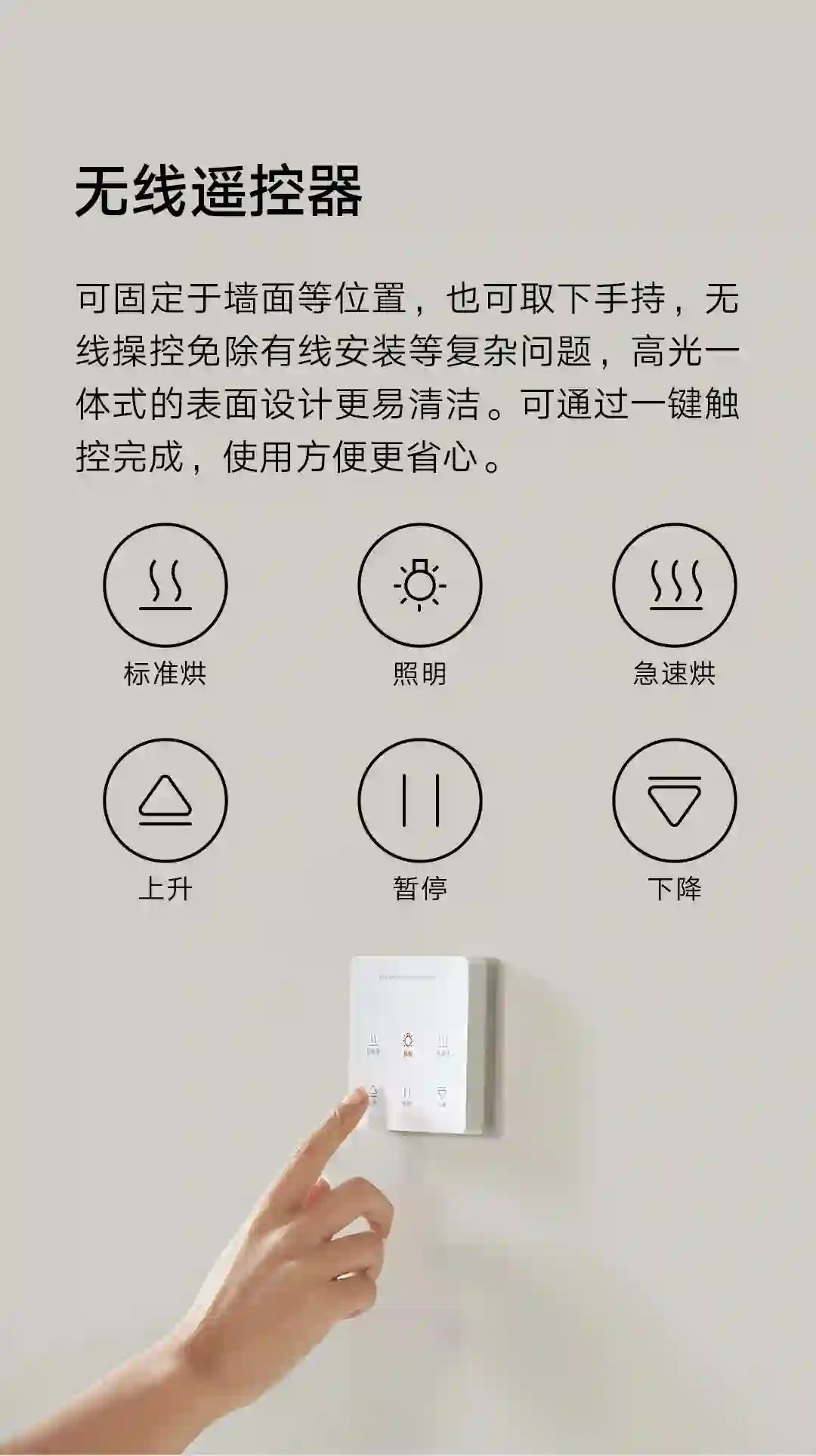 此外,米家智能晾衣机烘干款还配备无线遥控器,可固定在阳台墙面或直接手持操作,一键触控完成日常操作,使用方便更省心。