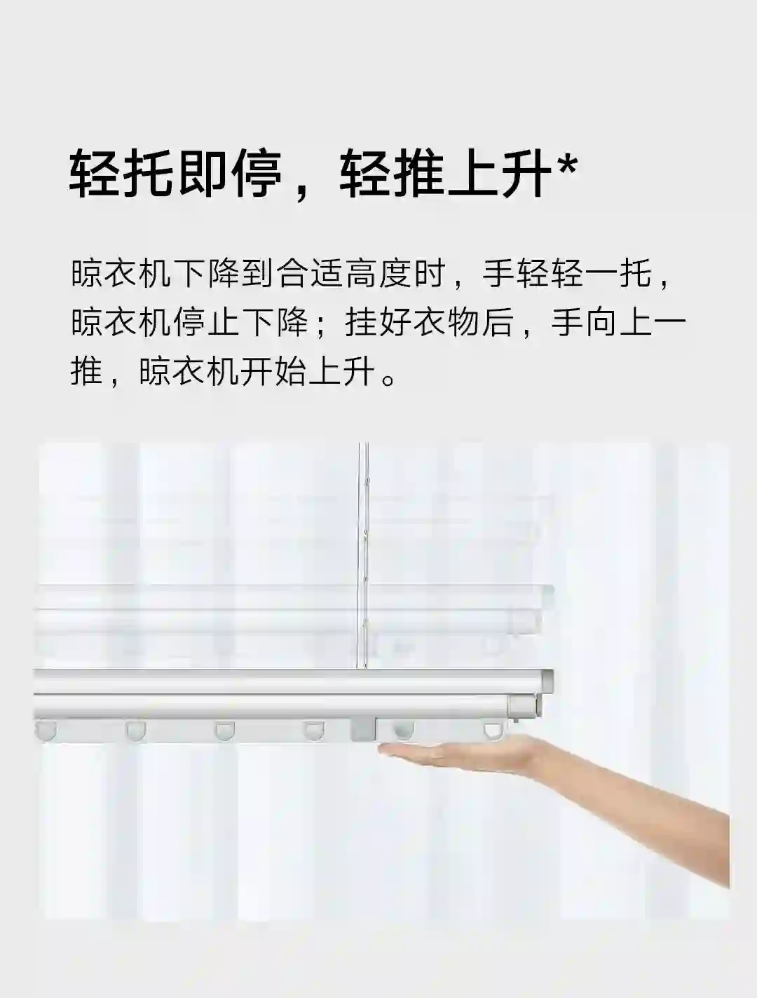 除了快速烘干 18 件衣物外,阳光好的时候,你依然可以将它作为常规晾衣机使用。