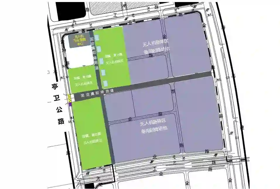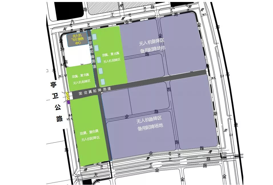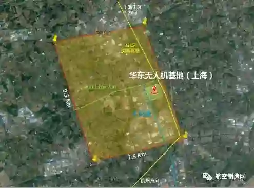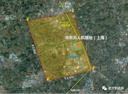 该无人机基地当前获批的空域位于金山工业区范围内:南北纵深约9.5 Km、东西宽度约7.5 Km、范围面积约58 平方公里;下一步适合水上无人机及大型无人机运行的空域也正在规划中。金山工业区成立于2003年9月,是上海市市级工业区,上海市品牌园区、上海市知识产权试点园区,目前正在打造国家绿色园区。园区规划面积58平方公里,凭借环境优美、配套齐全、产业集群,园区已成为杭州湾北岸先进制造业基地战略部署的主战场与最前沿。