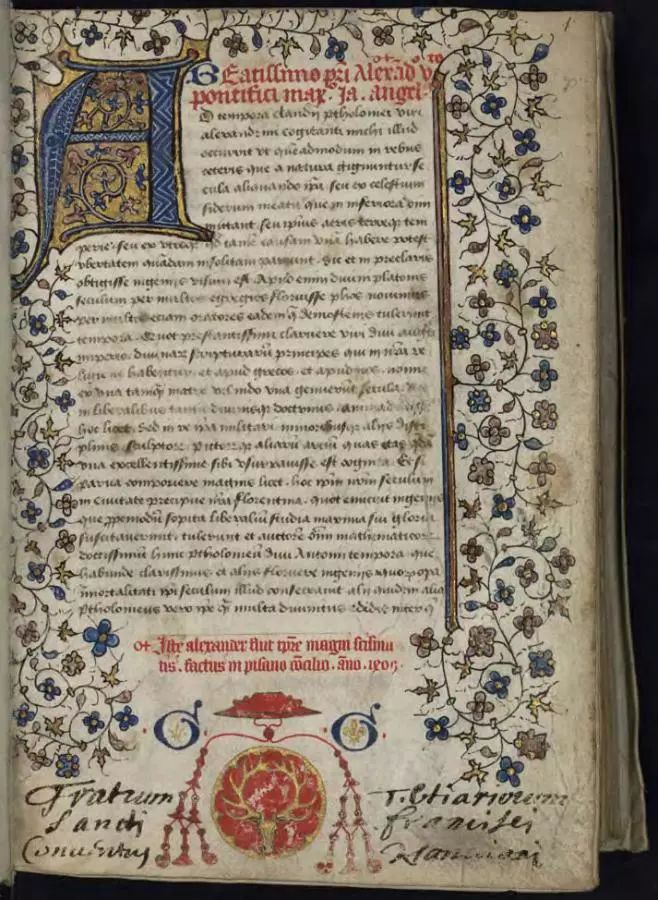 托勒密的《地理学指南》,书中详细说明了如何通过经度、纬度两种方法将球体的地球绘制到平面上,并以北为指标,由此后人绘制出了一系列的托勒密地图 | bmn-renaissance.nancy.fr