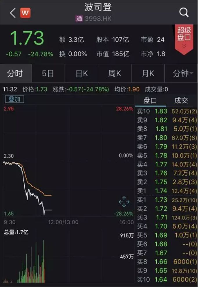 6月24日,波司登股价在港市场重挫,创上市以来最大跌幅,暴跌近25%。此前一篇Matt Wiechert发布的Bonitas Research报告称波司登自2015年以来捏造了8.07亿元的净利润,并存在夸大收入和利润、关联方交易、公开市场欺诈等行为。对此沽空报告,波司登回应彭博时称,报告“说的肯定不是公司的事实情况”,并称公司晚些会有官方评论。(凤凰网财经)