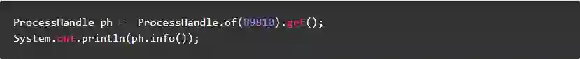 虽然我们很少在 Java 中调用系统命令,但是偶尔用到也是有的,当然都是ProcessBuilder 。还有一个就是增强的 ProcessHandle ,可以了解其他进程的一些信息,如获取所有进程、某一进程的启动的命令、启动时间等等。