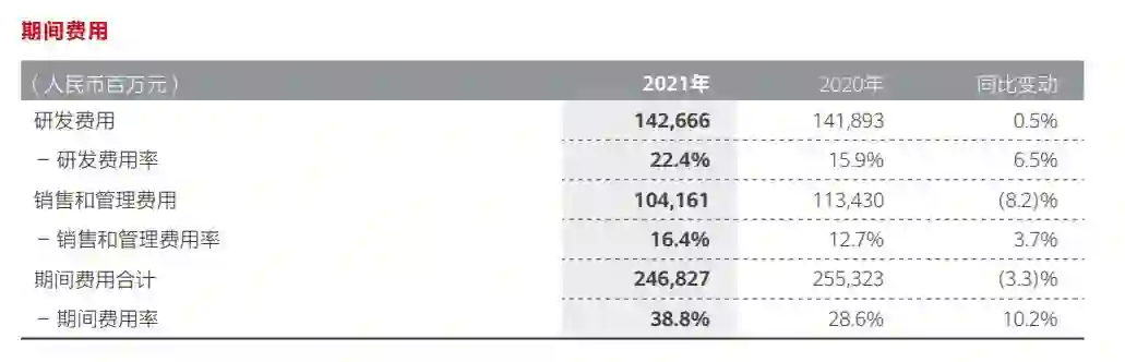 或许,研发的投入才是华为真实野心的展现。在营收大幅度下滑的情况下,2021年全年研发投入高达1427亿元,占全年收入的22.4%,超过了2020年的15.9%。
