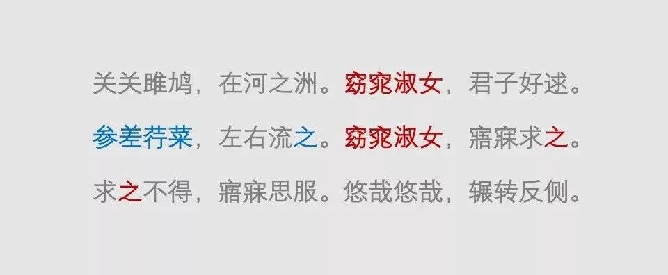 比如,想要理解《诗经·关雎》的这些语言描述了什么场景、传递了什么情感,首先要理解各个“之”指的是什么。在上图中,同种颜色标注的词语指向同一个实体,指代理解就是要让机器明白红色的“之”不是指“雎鸠”“君子”“参差荇菜”“左右”等其它对象或文本,而就是“窈窕淑女”;蓝色的“之”不是指“在河之洲”“君子”“窈窕淑女”等,而就是“参差荇菜”。