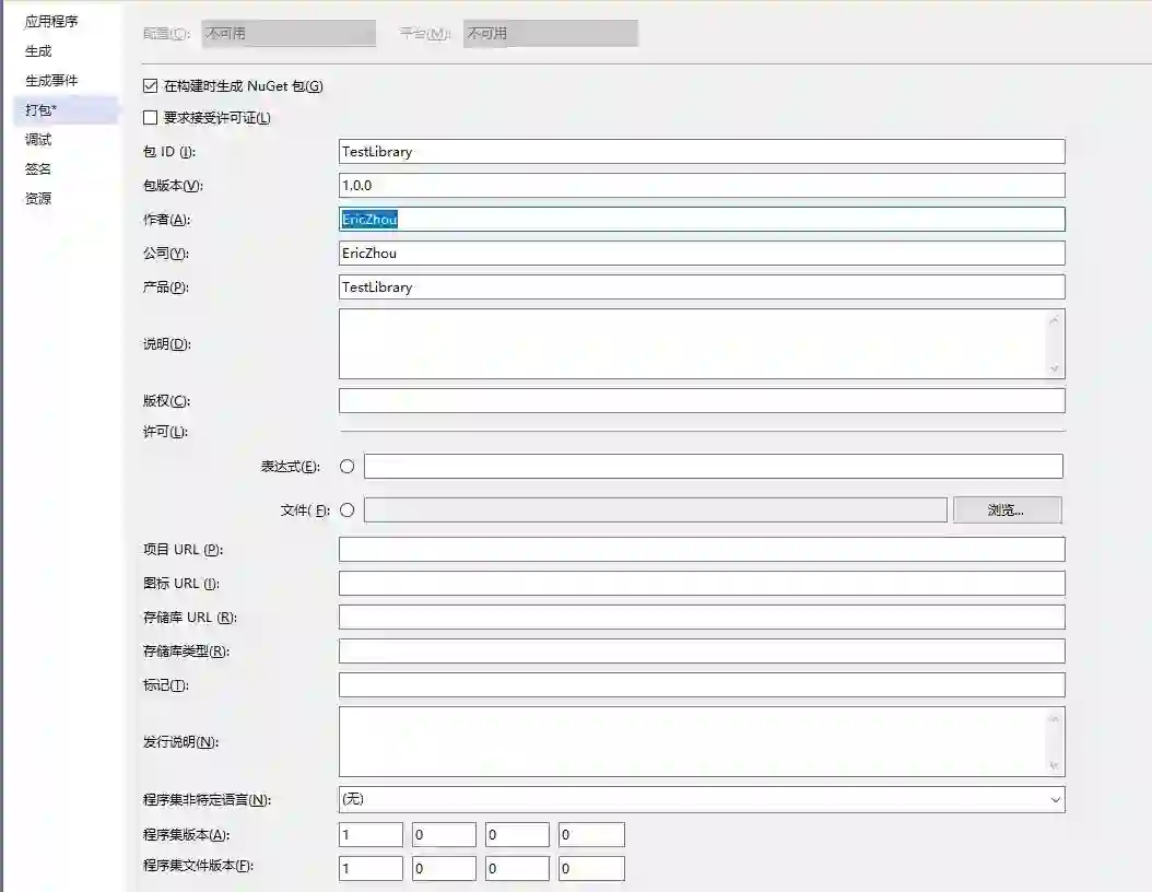 编译工程:Successfully created package 'C:\Users\zhougq\source\repos\TestLibrary\bin\Debug\TestLibrary.1.0.0.nupkg'.