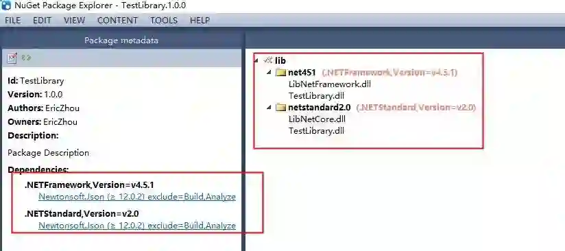 上个步骤中生成的两个.NET 目标版本的dll,可以分别制作支持多个.NET 目标框架的Nuget包。