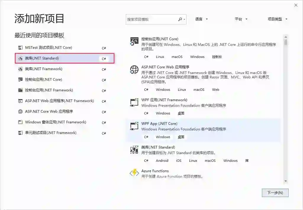 在这个示例代码中,我们使用了.NET Standard 2.0 Class Library Project。目标框架同时支持.NET Framework 4.5.1和.NET Standard 2.0