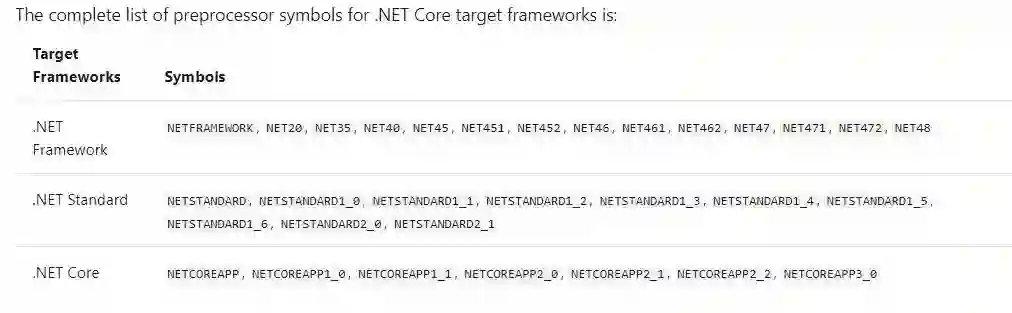 如果同一块业务逻辑,在.NET Framework和.NET Core实现不一样,我们在同一个代码中,如果通过预处理指令实现: