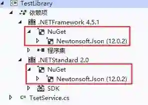 这样,这个Project就支持了多个.NET 目标框架,我们可以面向不同的.NET 目标框架添加不同的引用,当然如果依赖的Nuget也同时支持相同的.NET 目标框架,那就最匹配了:例如:Newtonsoft.Json